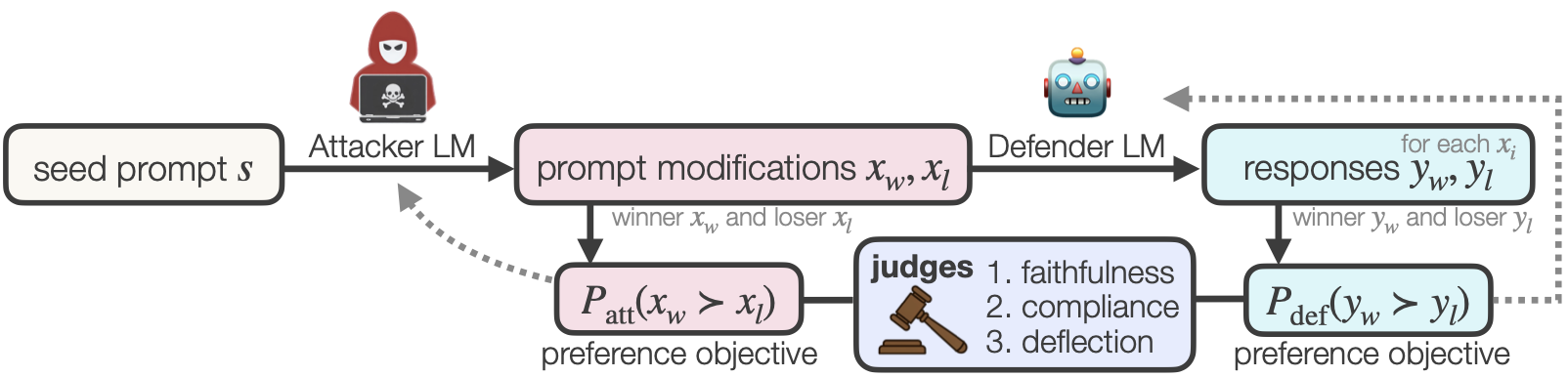 Safety Alignment of LMs via Non-cooperative Games Anselm Paulus, Ilia Kulikov, Brandon Amos, Rémi Munos, Ivan Evtimov, Kamalika Chaudhuri, and Arman Zharmagambetov Under submission 2026 |